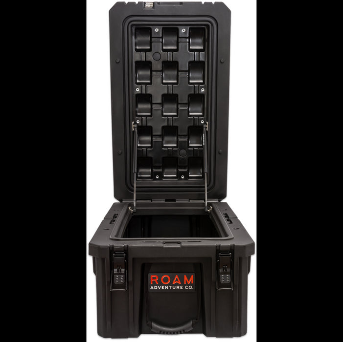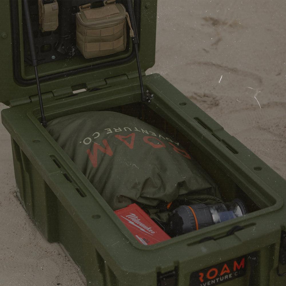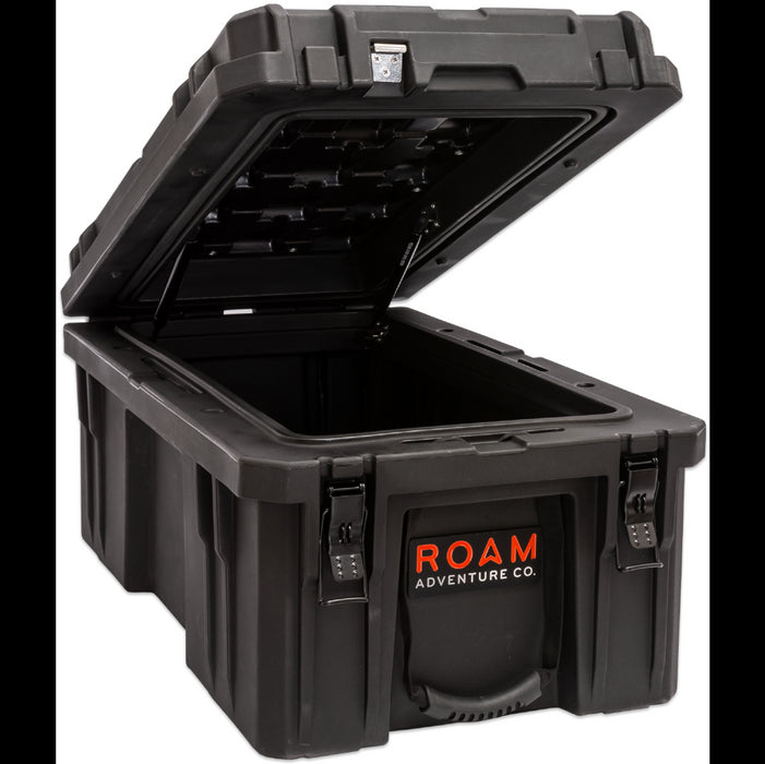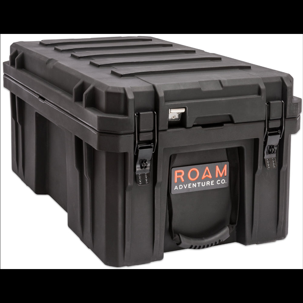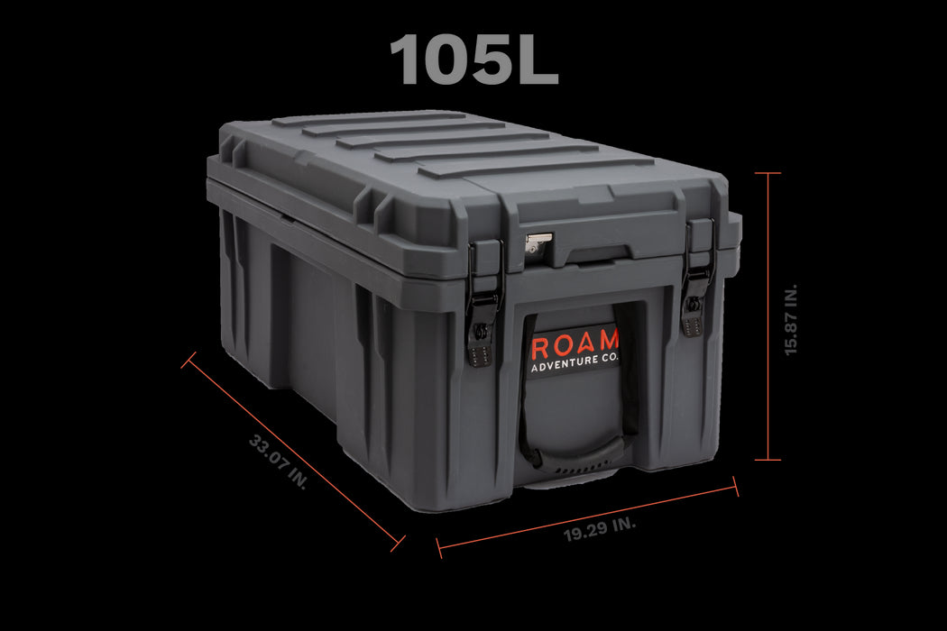 The ROAM 105L Rugged Case is a heavy-duty storage case and is ideal for storing larger camp equipment, stoves, sleeping gear, or recovery gear. Perfect for the trunk of a 4Runner/SUV or the back seat of a truck. This premium case features a durable LLDPE shell, our proprietary Lid-Lifts, Nylon rope handles, steel lockable latches, and a dust/water resistant gasket seal that makes sure your gear always stays protected no matter the weather or terrain. The threaded inserts in the lid give you the ability to add a lid organizer or molle panel to take your organization to the next level. Having an interlocking design makes stacking and pairing simple no matter the amount of gear you carry.