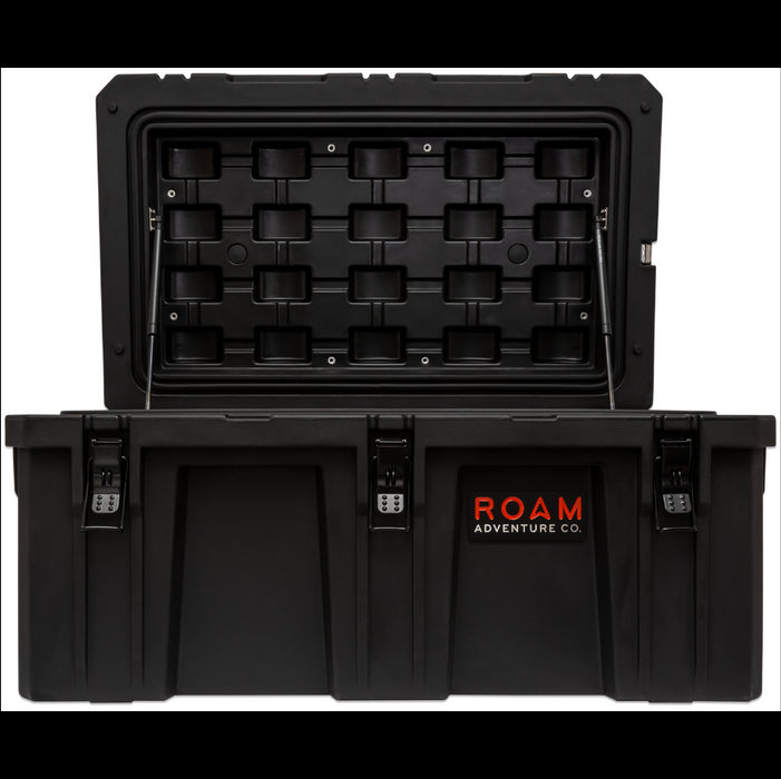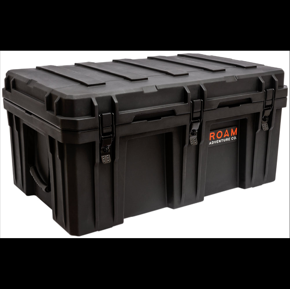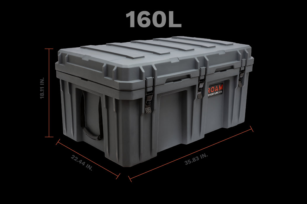 The ROAM 160L Rugged Case is a heavy-duty storage case that comes in 4 color options and is ideal for storing your largest camp equipment. It can also be used as a single storage unit for all camp gear. Perfect for the bed of your truck and can be mounted in the bed to be used as a utility/toolbox. This premium case features a durable LLDPE shell, our proprietary Lid-Lifts, Nylon rope handles, steel lockable latches, and a dust/water resistant gasket seal that makes sure your gear always stays protected no matter the weather or terrain. The threaded inserts in the lid give you the ability to add a lid organizer or molle panel to take your organization to the next level. Having an interlocking design makes stacking and pairing simple no matter the amount of gear you carry.