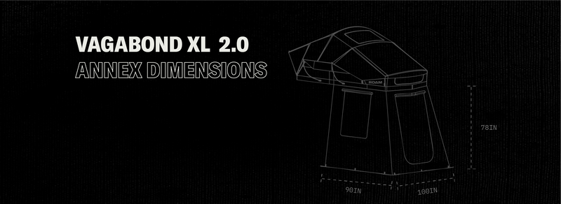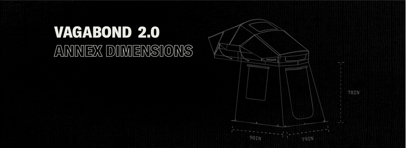 The Vagabond 2.0 Annex attaches to the porch of the Vagabond 2.0 Tent and gives you a secondary ground dwelling location below the tent. It features 2 mesh windows and 1 zipper door with a mesh screen and 1 access door on the back to access your vehicle. It also comes with an organizational hanging panel to keep all of your smaller gear items organized. The Annex Room is 6.5' in length from the bottom of the Vagabond 2.0 Tent.