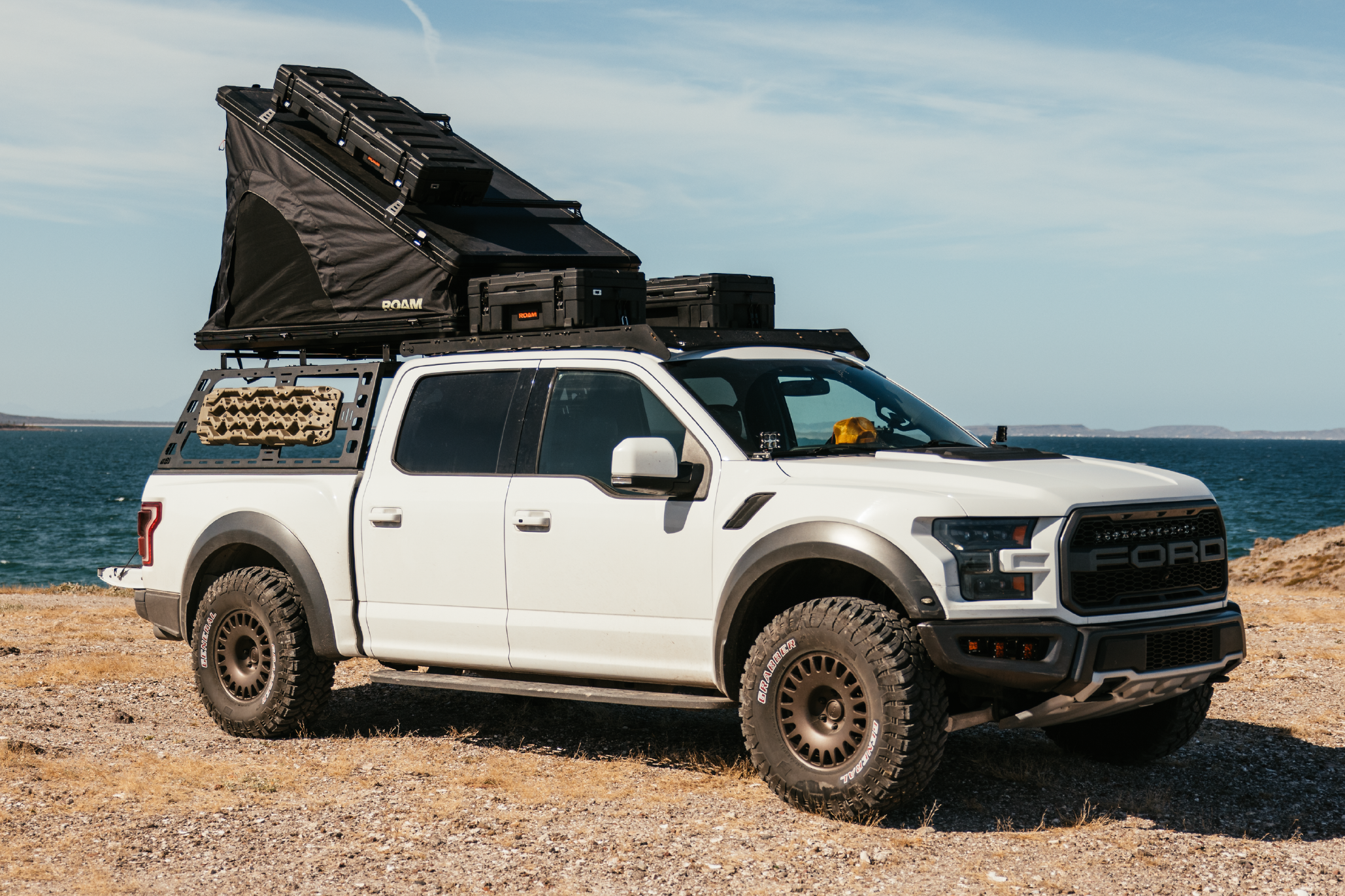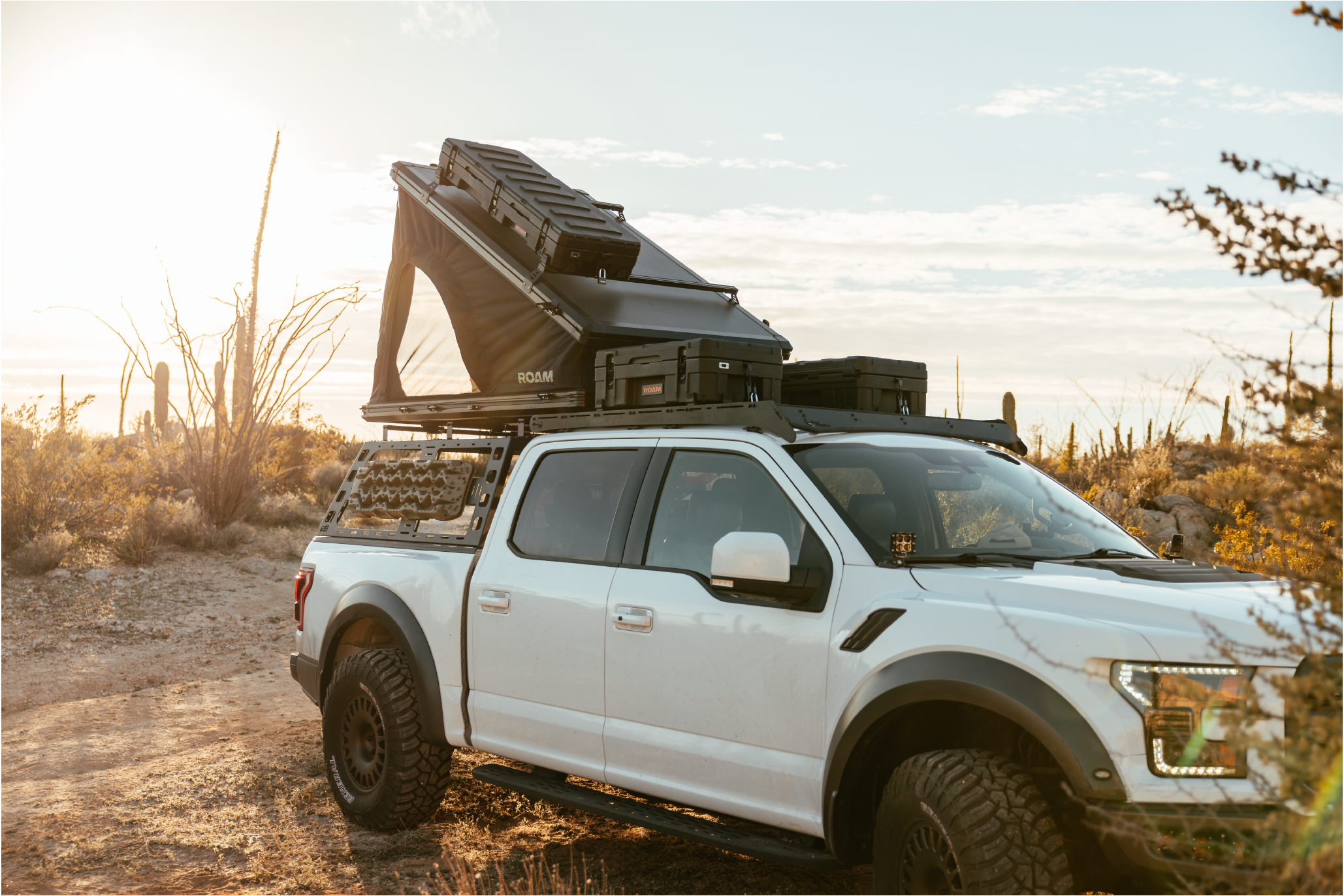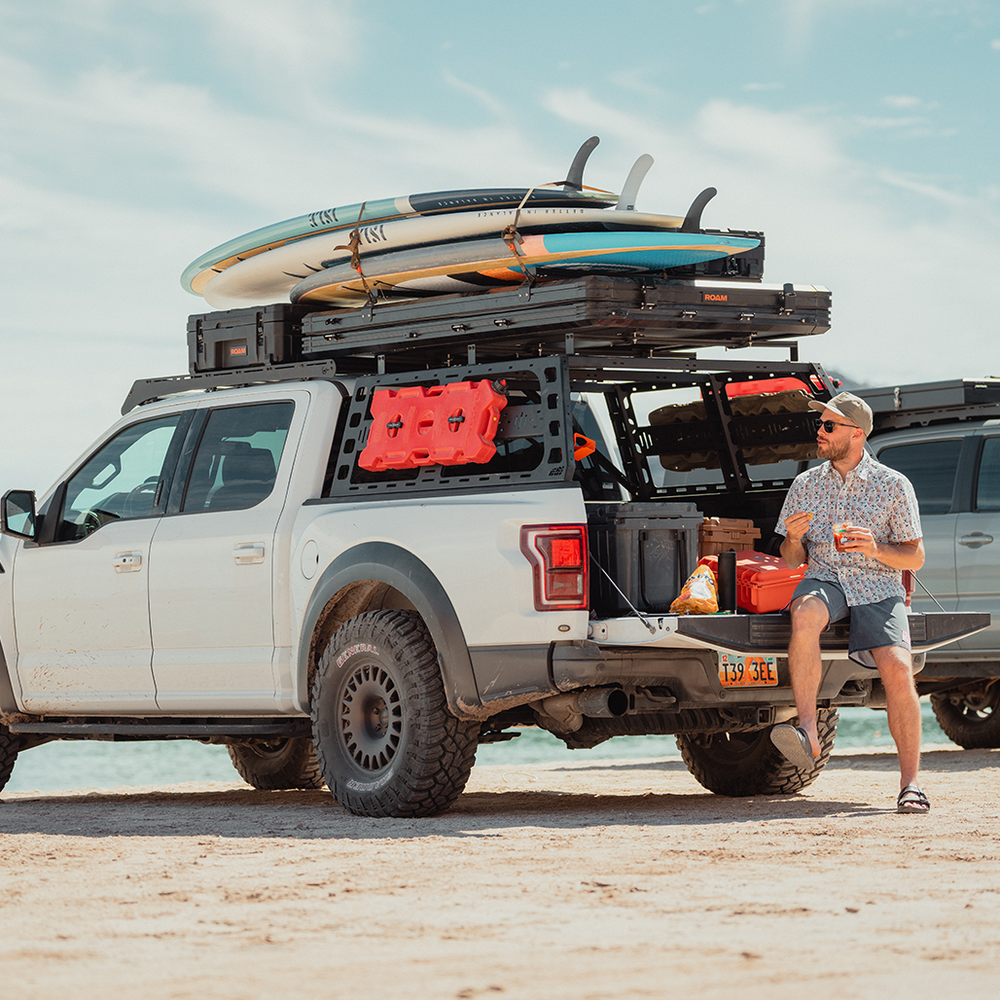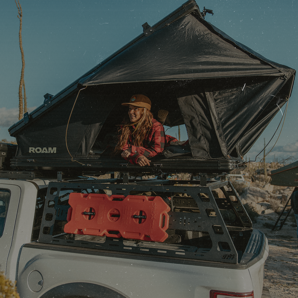 You don't have to leave your gear behind when you have a rooftop tent mounted on your vehicle. The Desperado rooftop tent comes equipped with a set of load bars that enable you to secure Rugged Cases or adventure gear to the top of your tent.