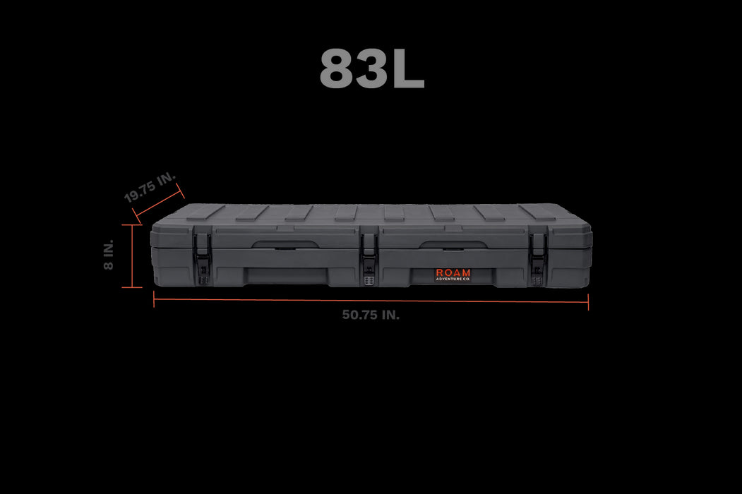 The ROAM 83L Rugged Case is a heavy-duty storage case that comes in 4 color options and is ideal for storing your long items such as chairs, shovels, axles, recovery gear or just adding more storage to any vehicle. Rugged low-profile storage that seamlessly mounts the roof of any vehicle. This premium case features a durable LLDPE shell, our proprietary Lid-Lift mechanisms, steel lockable latches, and a dust/water resistant gasket seal that makes sure your gear always stays protected no matter the weather or terrain. The threaded inserts in the lid give you the ability to add a lid organizer or molle panel to take your organization to the next level. Having an interlocking design makes stacking and pairing simple no matter the amount of gear you carry.