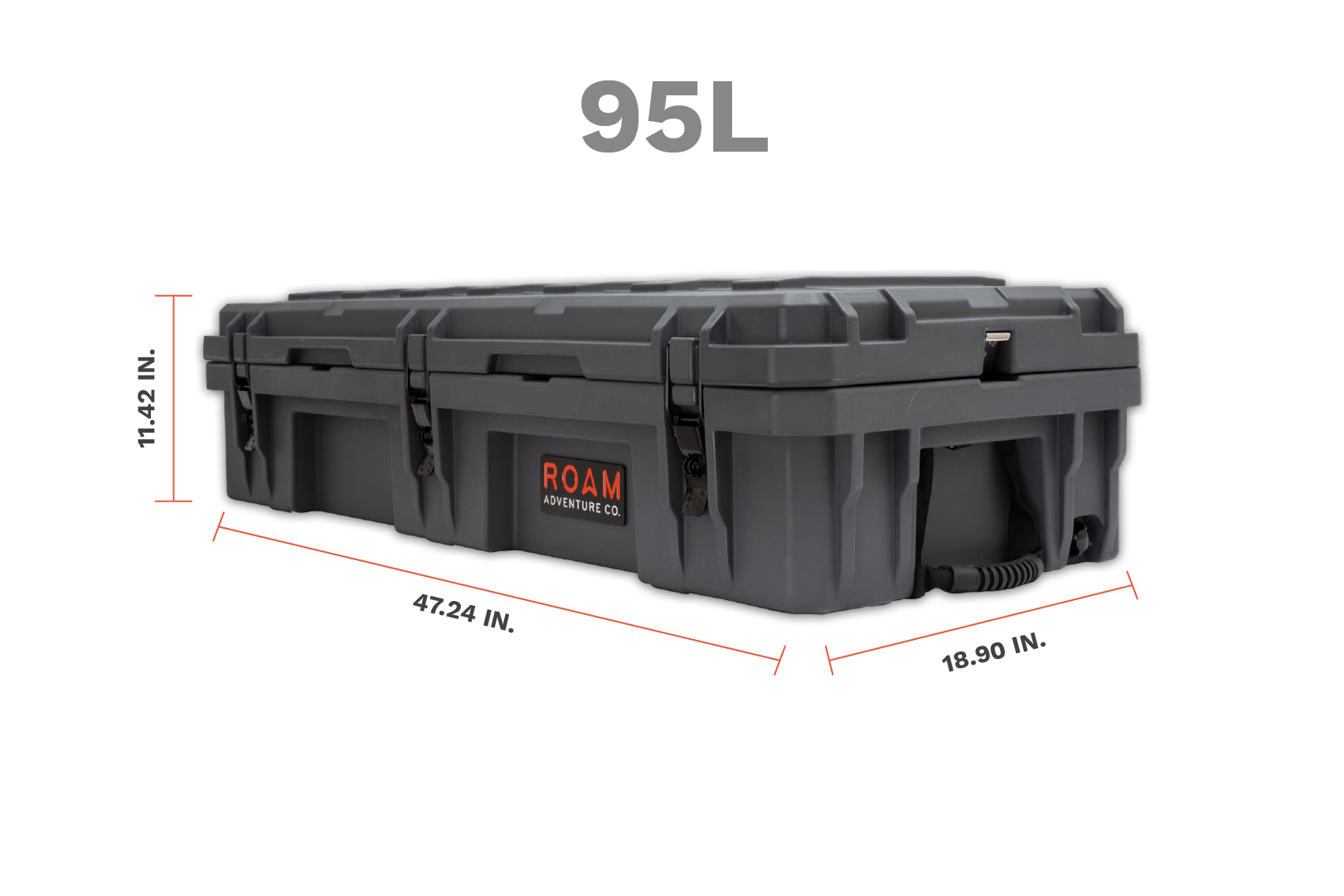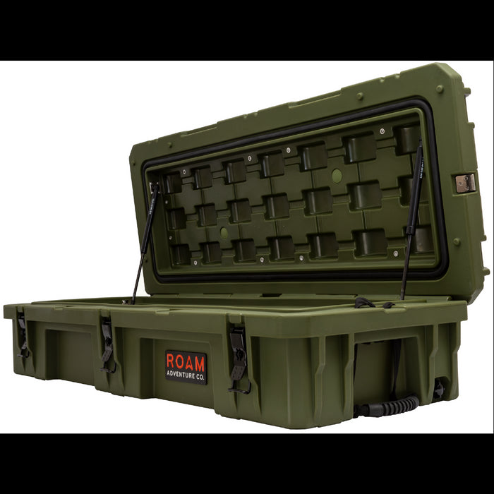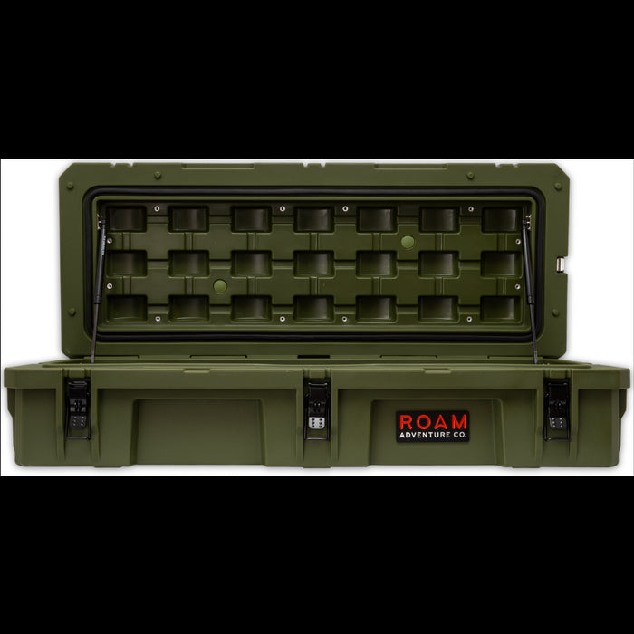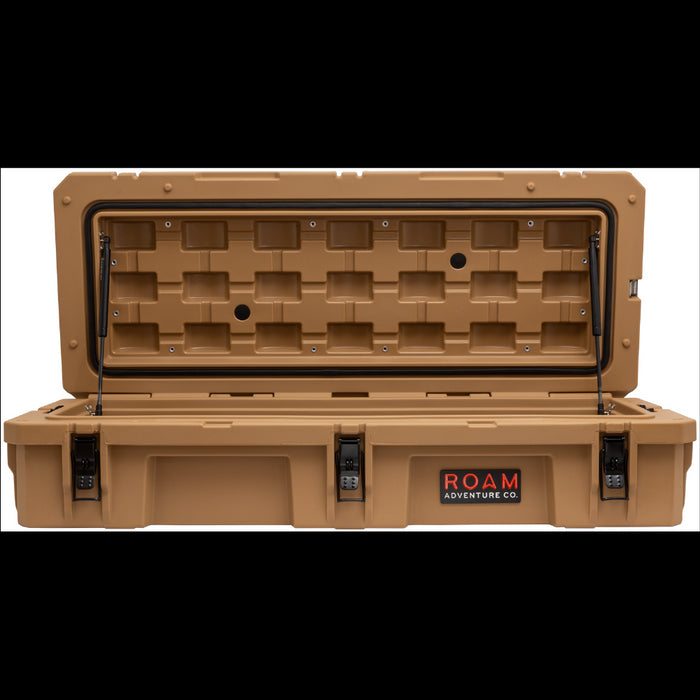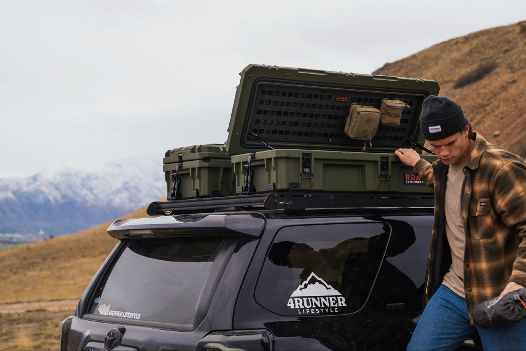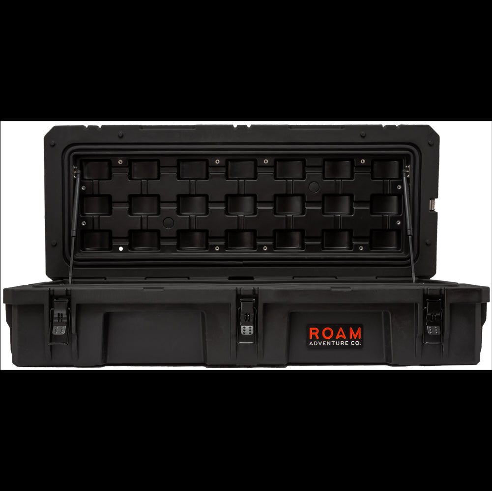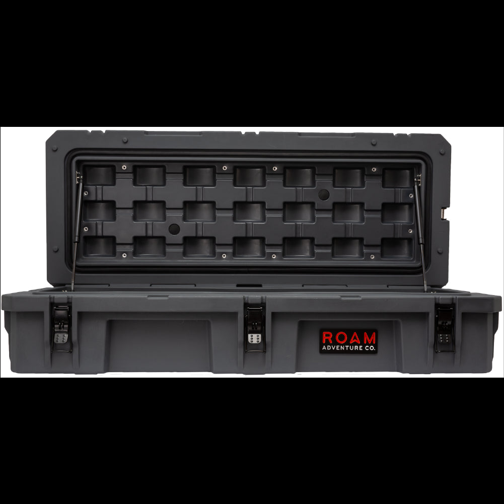 The ROAM 95L Rugged Case is a heavy-duty storage case that comes in 4 color options and is ideal for storing your long items such as chairs, shovels, axles, recovery gear or just adding more storage to any vehicle. Rugged storage that seamlessly mounts the roof of any vehicle. This premium case features a durable LLDPE shell, our proprietary Lid-Lifts, Nylon rope handles, steel lockable latches, and a dust/water resistant gasket seal that makes sure your gear always stays protected no matter the weather or terrain. The threaded inserts in the lid give you the ability to add a lid organizer or molle panel to take your organization to the next level. Having an interlocking design makes stacking and pairing simple no matter the amount of gear you carry.