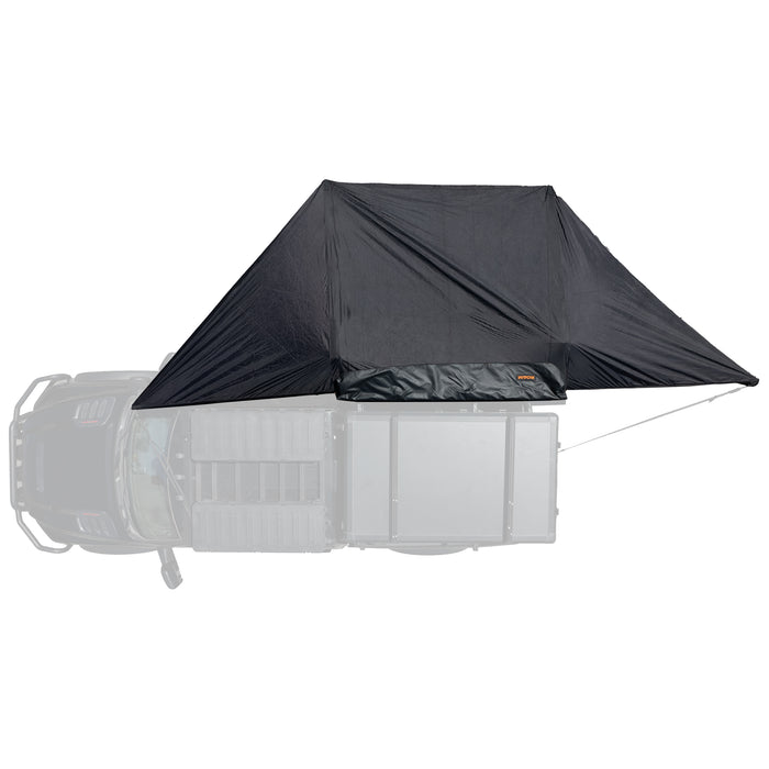 The Arc 180 Awning, is designed for those in pursuit of shade and shelter from the worst conditions. With an expansive 180-degree coverage and a substantial 21-foot extension (equivalent to the length of a 4-door Toyota Tundra), this awning offers a significant area of protection. Remarkably, it transforms into a compact 7-foot package that effortlessly mounts on vehicles of various sizes, making it a practical and space-efficient choice. If your vehicle features an upward-swinging trunk lid, the 180 Awning is a fitting selection.