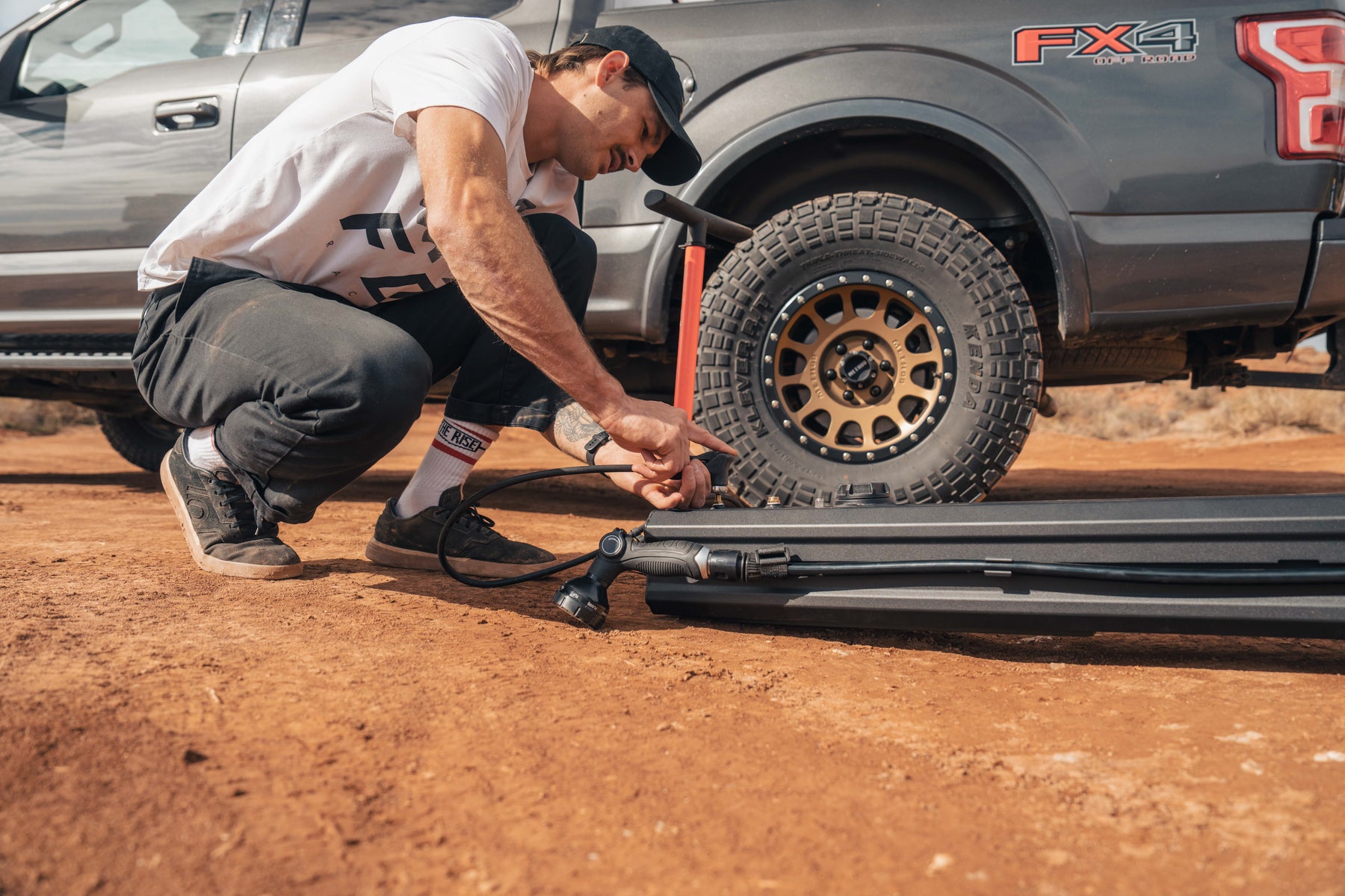Whether you need to rinse off your sandy feet, spray the mud off your bike, or take a shower on your extended camping trip, the 7-gallon & 5-gallon Water Tank is the perfect system for water storage. It has an aluminum body that helps heat up the water in the summer heat and comes with an included hose, shower nozzle, and mounting hardware. The hardware on the tank is all stainless steel and made to last. *Water tank is not advised to be used as a potable water source*